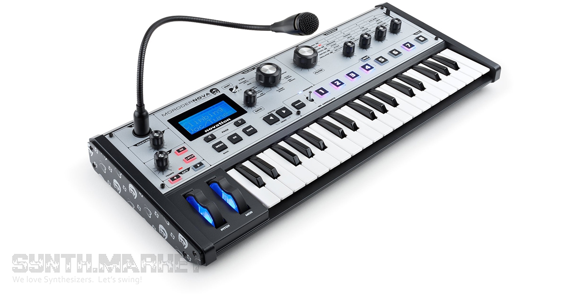 Now let’s have a closer look at the sound engine. Each patch allows you to use three oscillators, two ring modulators, a noise generator and two filters in each patch. In addition, each patch has 20 assignable modulation cells. The waveforms of the oscillators include standard sine, triangle, saw, pulse, square, as well as nine combinations of saw and square along with 20 digital and 36 wavetable timbres. There are as many as 14 types of filters in the synthesizer: low-pass with a 6, 12, 18, 24 dB per octave depth of cut, band-pass with a 6:6, 6:12, 12:6, 6:18, 18:6, 12:12 dB per octave depth of cut and high-pass with a 6, 12, 18, 24 dB per octave depth of cut. As for modulation sources, the instrument offers six envelope generators and three low frequency oscillators (LFOs), a modulation wheel is located next to the keyboard, and an expression pedal can be connected. You can apply modulation to 66 different parameters, among which, besides obvious ones, there is also a recursive modulation. The effects section of the sound engine includes distortion, compressor, chorus / phaser, delay, reverb and equalizer. Another part of the instrument is a 12-band vocoder with the VocalTune function, which is suitable not only for changing the voice timbre, but also for letting the signals from other instruments through the effects section of the MiniNova synth.