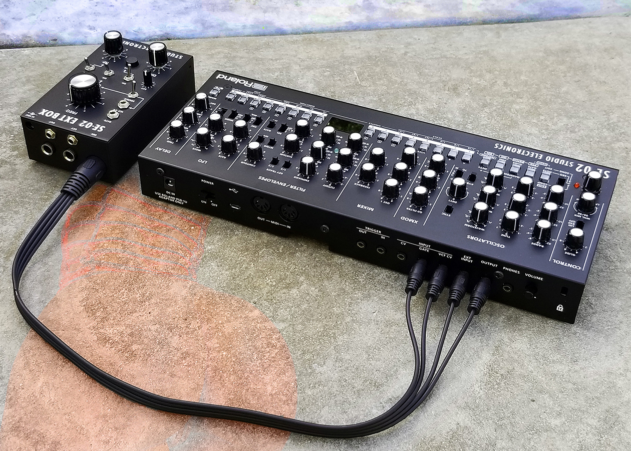 Last week, a kind of addition to this instrument came out in the form of the SE-02 EXT BOX, a box made in the same style as the synthesizer itself (it is available in a black steel case with or without wooden end-cheeks). This box adds a couple of very useful and desirable for many functions, namely: