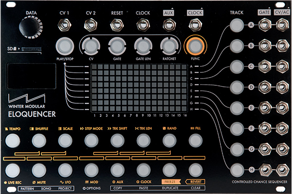 Winter Modular demonstrated its new sequencer Eloquencer at Superbooth 17 - an 8-track 'Controlled Chance' step sequencer for Eurorack modular synthesizers.